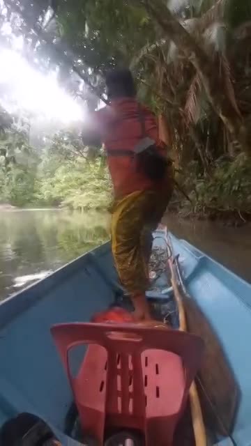 After a good sleep in the living hall area, we woke up early preparing for the adventure. However, rain continued to fall from mid night until the morning. It was until 8am that the rain finally stopped. The boatman quickly bought a jerry can of gasoline for the engine.